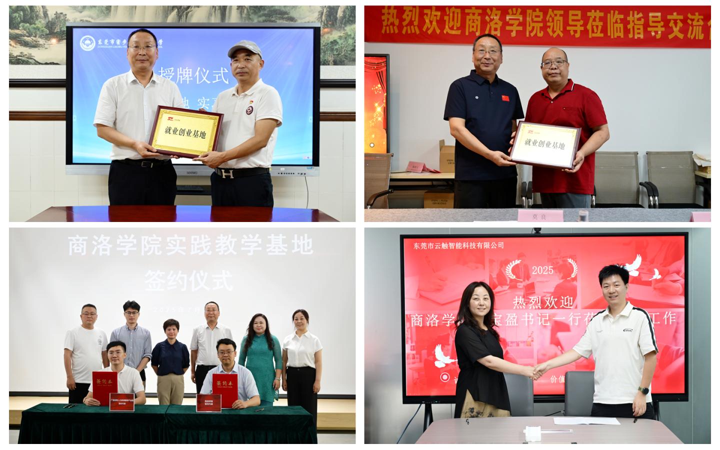 刘宝盈一行先后深入东莞人力资源服务产业园、一览数字人才科技有限公司、广睿实业有限公司、信鸿人力资源管理有限公司、东莞寮步宏伟初级中学、东晟教育科技有限公司、云触智能科技有限公司、绿联净化技术有限公司、惠州光正实验学校、东莞城市学院等企业和学校,深入了解了企业人才结构现状与岗位需求,围绕产教协同机制创新、定制化人才培养、实习就业基地共建等方面工作进行探讨交流。与东莞人力资源服务产业园、东莞寮步宏伟初级中学、东晟教育科技有限公司、嘉芮文化创意有限公司、云触智能科技有限公司、惠州光正实验学校签订了共建实践教学基地和就业创业基地合作协议。