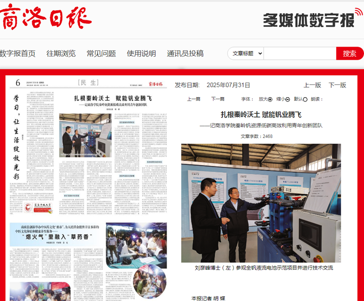 紧扣商洛“一都四区”发展战略及“3+N”产业集群建设需求,bat365在线唯一官网登录秦岭钒资源低碳高效利用青年创新团队负责人刘彦峰主动承担市科技局、科协委托的钒、钼、锌、铜等优势资源产业链与创新链调研任务,带队走访调研商洛境内新材料产业链企业40多家次。2018年至今,该团队先后参与制定的《〈中国制造2025〉商洛实施方案》《商洛市新材料产业发展推进方案》《有色金属材料产业链“十四五”科技创新规划》等重要文件,为商洛新材料产业科学布局筑牢了科研根基。2023年,受商洛市政协委托,刘彦峰带领团队成员深入商南、山阳等地的钒生产企业,通过实地勘察、座谈交流等方式开展专题调研,全面掌握全市钒资源储量、开采利用现状,钒尾矿堆存及综合利用情况,以及高端钒产业(涵盖高纯钒、钒合金、钒储能技术等)的研发中心建设、技术发展水平、人才储备等核心信息,形成的《发展壮大全钒产业链 助推商洛经济高质量发展》调研报告获市政府采纳,为产业升级提供了关键决策参考。