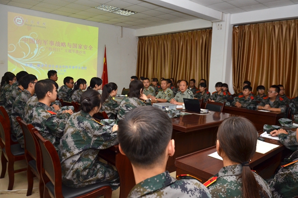 2015年9月9日,bat365召开中国军事战略与国家安全主题座谈会。解放军西安政治学院军事学系教授、2015级新生军训团团长刘京生大校,军训团副团长庄超中校,军训团副团长伊明强少校出席本次活动。武装部部长、军训团政委石启英主持座谈。