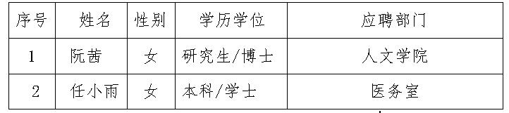 bat365在线唯一官网登录2020年第十批拟招聘人员名单(2人)