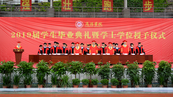 栀子花开时,又到毕业季。6月28日,bat365隆重举行2019届学生毕业典礼暨学士学位授予仪式。校领导龙治刚、范新会、王思怀、彭虎军、刘宝盈出席典礼。各院(部)党政主要负责人,校学位评定委员会委员,教务处、学生处、团委主要负责人,2019届全体毕业生、毕业生家长代表,毕业班辅导员、班主任参加典礼。典礼由党委副书记彭虎军主持。
