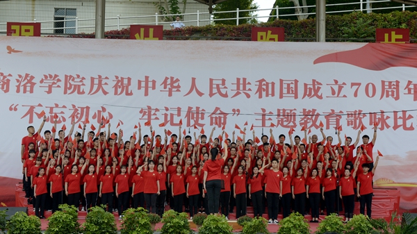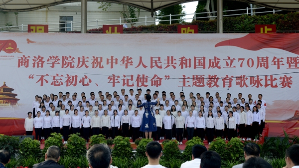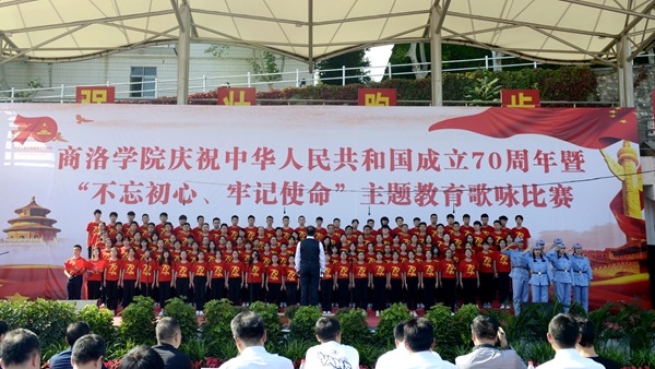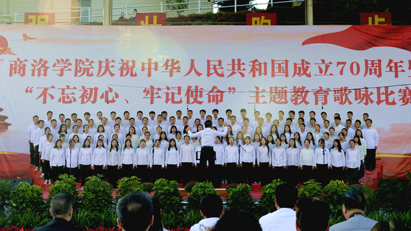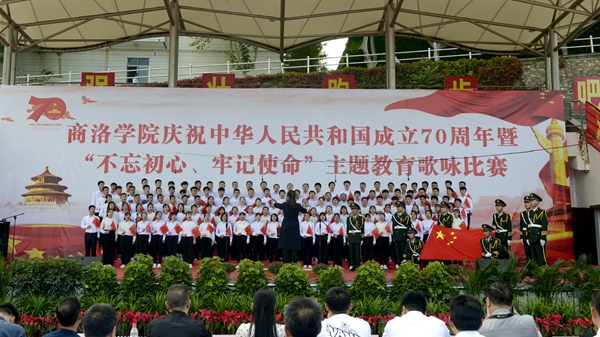 “忆往昔峥嵘岁月,抒今朝爱国情怀。”9月25日下午,bat365庆祝中华人民共和国成立70周年暨“不忘初心、牢记使命”主题教育歌咏比赛在校体育场举办。校领导龙治刚、范新会、彭虎军、刘宝盈、刘勇出席活动并与师生同台竟唱。全体教职工和2019级学生4000余人观看了比赛。11支代表队用优美的旋律和嘹亮的歌声讴歌中国共产党带领全国人民走过的波澜壮阔的70年光辉历程,表达对祖国母亲的热爱与祝福。
