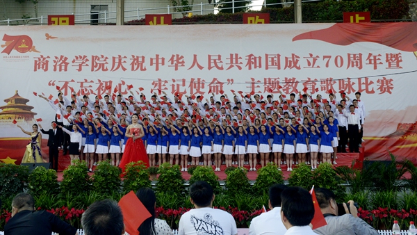 活动现场座无虚席、气氛热烈。比赛在电信学院代表队舒缓深情、铿锵激昂的歌曲《今天是你的生日,中国》《四渡赤水出奇兵》中拉开帷幕。5位校领导参加的机关联合代表队在校党委书记龙治刚浑厚深情的领唱下,演唱了《弹起我心爱的土琵琶》《妈妈教我一支歌》,展示了抗日战争时期中华英雄儿女不畏牺牲、保家卫国的坚强革命意志和乐观主义精神,抒发了在中国共产党的正确领导下创造美好新生活的幸福与自豪。艺术学院代表队用优美动听的歌声演唱了《不忘初心》《迎风飘扬的旗》,歌曲结尾,当一面鲜艳的五星红旗被高高举起时,全场师生为之振奋,掌声雷动。生物学院代表队通过朗诵、陕北民歌、舞蹈与合唱相结合的方式演绎了《东方红》《在灿烂的阳光下》,为师生带来了一场视听盛宴。
