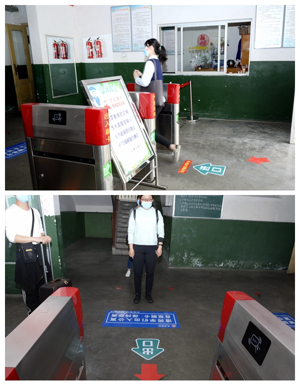 整场演练严格按照学校春季开学及疫情防控工作方案进行,秩序井然、严谨细致。在教室演练现场,台阶上红色的路线标识清晰醒目,学生在班级联络教师统一带队下,佩戴口罩、进行手部消毒后按指定路线经测温门进入教学楼;6号公寓楼西门口,学生持一卡通,经工作人员体温枪测温后,间隔1.5米有序进入公寓;食堂外,就餐人员需在新设置的洗手池进行“七步洗手”,经工作人员测温、手部消毒后进入指定食堂,间隔取餐后,按桌面标识提示面南而坐,落座就餐,就餐完毕随即戴上口罩,将餐具送至收餐处,并按指定出口出门。