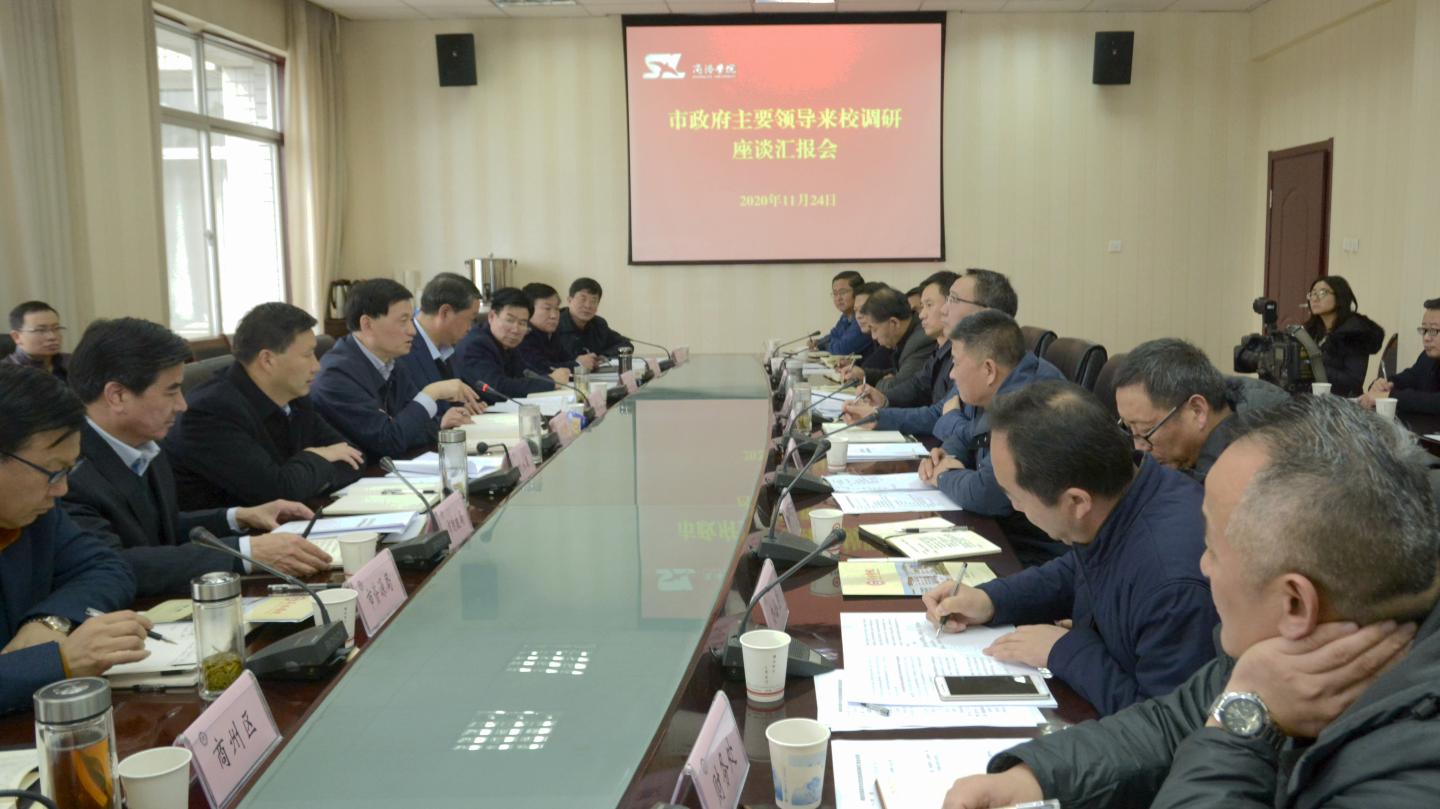 11月24日,市委副书记、市长郑光照带领商州区政府、商洛高新区(商丹园区)管委会和市级相关部门负责同志,来bat365调研学校建设发展情况,召开座谈汇报会研究解决困难问题。副市长周秀成、市政府秘书长刘永康一同调研并参加调研座谈。校党委书记龙治刚主持座谈会,校党委副书记、校长范新会汇报工作。