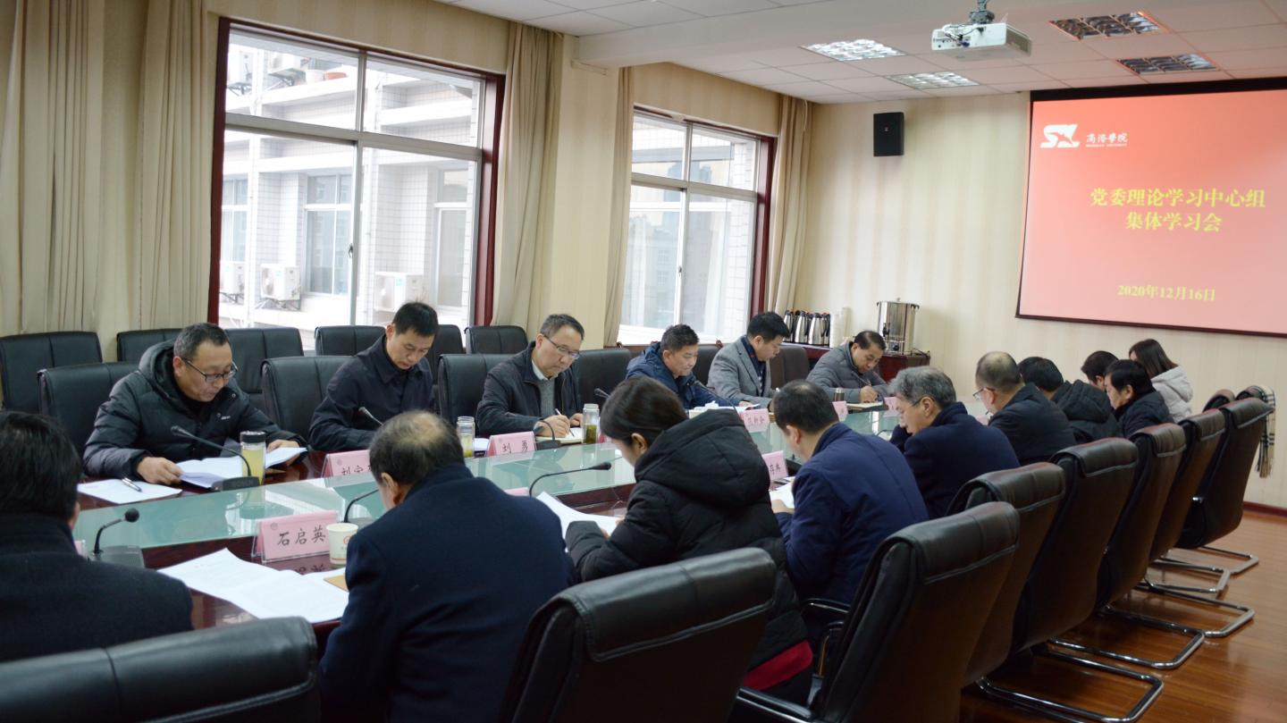 12月16日,校党委书记龙治刚主持召开党委理论学习中心组学习会,集体学习习近平总书记在纪念中国人民志愿军抗美援朝出国作战70周年大会上的重要讲话、在全国劳动模范和先进工作者表彰大会上的重要讲话、在中央政治局第二十六次集体学习时的重要讲话精神,深入学习《深化新时代教育评价改革总体方案》,理论学习中心组成员参加会议。
