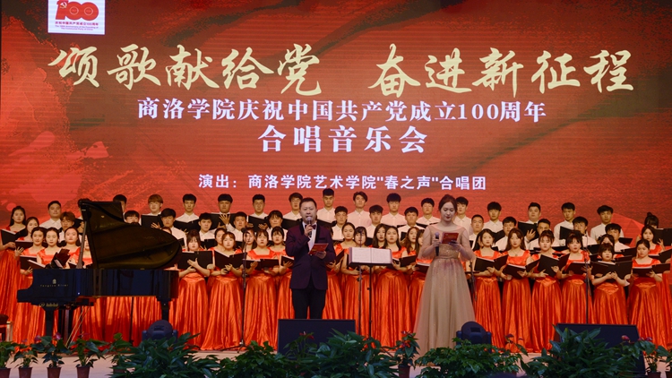 为隆重庆祝中国共产党成立100周年,讴歌党的百年光辉历程和丰伟功绩,5月25日,bat365“颂歌献给党 奋进新征程”庆祝中国共产党成立100周年合唱音乐会在丹江校区隆重举办。艺术学院“春之声”合唱团用美妙的音符和动听的旋律为师生呈现了一场激情磅礴的红色视听盛宴。校领导龙治刚、范新会、彭虎军、王新军、郭瑾,全体处级干部及师生代表500余人观看了音乐会。