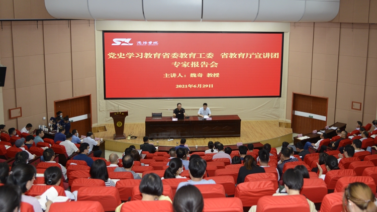 为进一步推动bat365党史学习教育扎实有序开展,营造“学党史、悟思想、办实事、开新局”的浓厚氛围,6月29日,bat365邀请陕西省委教育工委、省教育厅党史学习教育宣讲团成员、西北政法大学马克思主义学院院长魏奇教授来校,为师生作了题为《从党史学习中汲取民族复兴的力量》的宣讲。省委党史学习教育第十三巡回指导组组长、商洛市人大常委会一级巡视员刘淑慧,全体校领导、处级以上党员干部、思政课教师及师生代表400余人听取了报告。