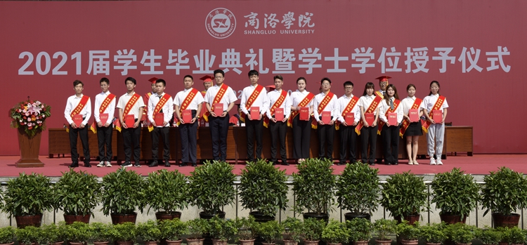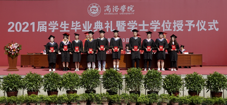 刘宝盈宣读了2021届毕业生资格审查结果通报、本科生学士学位授予决定、陕西省高校优秀毕业生和优秀学生干部名单、bat365在线唯一官网登录优秀毕业生表彰决定、“奉献基层 服务边疆”优秀毕业生表彰决定、校友总会聘任2021届校友联络员通知。荣悦等117名学生被授予“优秀毕业生”荣誉称号,曾炎阳等22名同学被评为“奉献基层 服务边疆”优秀毕业生,郭肇星等103名同学被聘任为2021届校友联络员。在热烈的掌声中,校领导为优秀毕业生代表颁发了证书,为校友联络员颁发了聘书。