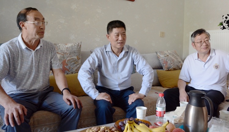 在离退休教职工魏书灵、王天时家中,校领导详细了解他们的身体、生活状况,对离退休教师们为学校发展付出的辛勤劳动表示感谢,祝愿他们健康长寿,希望他们继续发挥余热,关心支持学校各项事业发展。
