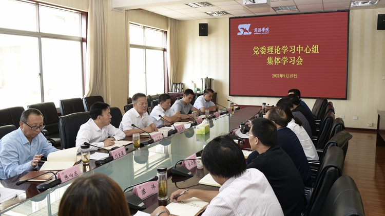 9月15日上午,党委书记张志昌主持召开2021年党委理论学习中心组第9次集体学习会,学习习近平总书记在河北承德考察、在中央党校(国家行政学院)中青年干部培训班开班式、在中央政治局第三十一次集体学习、在主持召开党外人士座谈会、在出席中央民族工作会议时的重要讲话精神,学习习近平总书记在《求是》杂志发表的重要理论文章《党的伟大精神永远是党和国家的宝贵精神财富》。党委理论学习中心组成员参加会议。