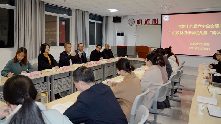 为深入学习党的十九届六中全会精神,推进全会精神进教材进课堂进头脑,11月26日下午,bat365召开党的十九届六中全会精神“三进”集体备课会。校党委书记张志昌、副校长刘宝盈出席会议,教务处、中国特色社会主义理论体系研究中心负责人,马克思主义学院相关负责人及全体教师参加会议。