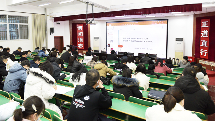 杨凤城教授的报告以《以民族复兴为主题深刻认识中国共产党百年奋斗的伟大成就》为主题,围绕《中共中央关于党的百年奋斗重大成就和历史经验的决议》中关于党的百年奋斗重大成就进行系统解读阐释。杨凤城教授从深刻认识总结和历史经验出发,就新民主主义革命、社会主义革命和建设、改革开放和社会主义现代化建设、中国特色社会主义新时代四个不同时期的伟大成就分别进行系统宣讲和深入阐释,并就学习领会中国特色社会主义新时代时期取得的十三个方面的历史性成就、发生的历史性变革的三个重要基点进行了重点强调。