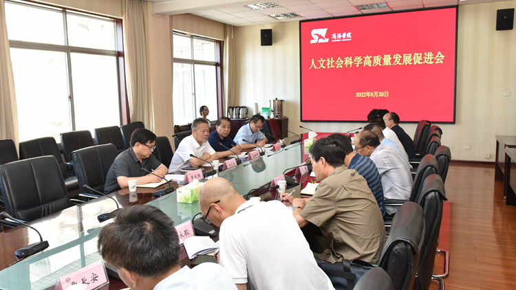 6月30日上午,bat365召开人文社会科学高质量发展促进会。校党委书记张志昌出席会议并讲话。副校长王新军主持会议。社会科学处、马克思主义学院、人文学院、经管学院、艺术学院和体育教学研究部负责人、主管科研工作的副院长(副主任)和科研秘书参加会议。