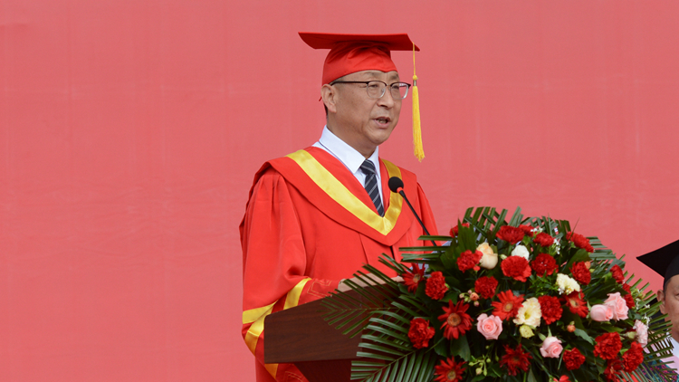 范新会寄语全体毕业生,一要志存高远、牢记使命,将国家利益放在第一位,以实际行动诠释新时代的青年使命;二要不畏艰险、逆流而上,脚踏实地、苦干实干;三要心怀希望、勇毅前行,眼里有光芒、心中有梦想、脚下有力量!