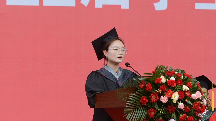 在校生代表、经济管理学院学生任璐瑶代表全体在校生向2022届毕业生送上最真诚的祝福,祝福学长、学姐们前程似锦,再相逢依旧如故,容颜依旧不变、初心仍似少年!