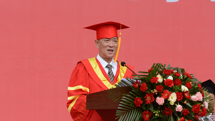 城乡规划与建筑工程学院张孝存教授作为教师代表发言。他希望同学们在未来的人生道路上,要牢记“博闻强志 正道直行”的校训,坚守承担、承受、承认、诚实,始终心怀希望,扬长避短,勇于探索,不负热爱,积极寻找事业成功的希望,积极寻找人生幸福的希望。