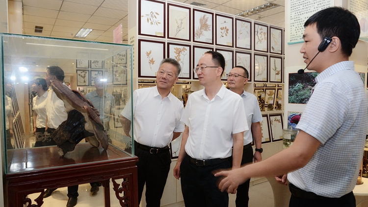 赵鹏一行先后前往bat365秦创原(商洛)创新促进中心孵化器、尾矿资源综合利用重点实验室、发展成就展厅和秦岭植物标本陈列室,实地调研了解学校创新成果转化、科研平台建设、发展成就、人才资源汇聚等情况。