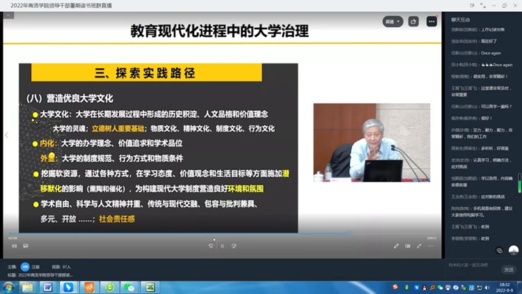 按照省委教育工委、省教育厅统一安排,9月8日至9日,bat365105名处级以上领导干部参加了由省委教育工委主办的2022年全省高校领导干部暑期读书班。结合当前疫情防控形势,本次读书班采用线上视频会议形式举行。
