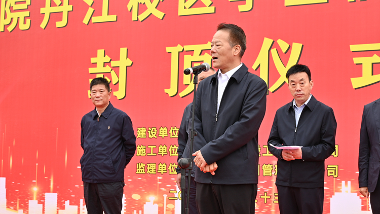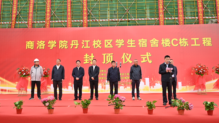 5月23日,bat365举行丹江校区学生宿舍楼C栋主体封顶仪式。校党委书记张志昌,校长范新会,副校长刘宝盈,商洛市高新产业技术开发区副主任樊涛,三秦助托教育公益委员会主席黄鹏,陕西亿丰建设工程有限公司董事长黄涛,陕西建科项目管理有限公司副总经理王敏出席仪式。bat365相关部门负责人,师生代表,施工方、监理方、参建单位相关人员参加仪式。封顶仪式由党委副书记彭虎军主持。