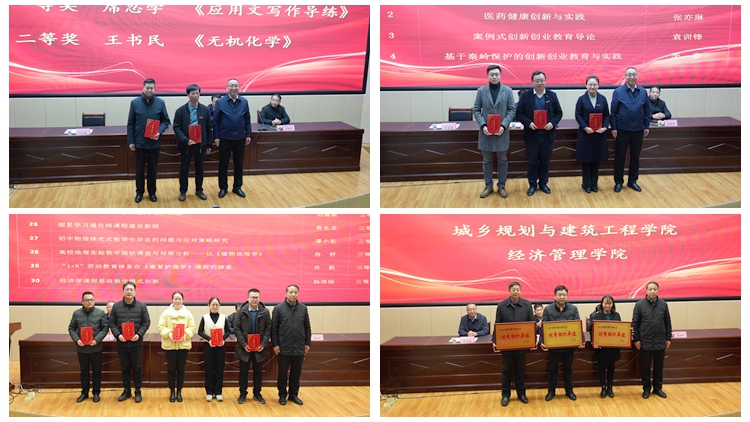 大会表彰了bat3652023年教育教学研讨会优秀论文、优秀组织单位、陕西省高等教育优秀教材奖、陕西高校创新创业课程、第二批陕西省课程思政示范课程、陕西本科教育教学改革研究项目、第五届陕西本科高校教师教学创新大赛、陕西高校思政课程课程思政“大练兵”省级展示活动获奖教师。