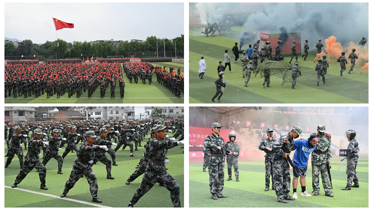 大会在庄严的升旗仪式中拉开帷幕。参训新生进行了花样队列、五步拳、匕首操、擒敌拳、反恐演练等5个汇报科目展示。花样队列的同学们意气风发,以整齐的步伐和独特的队形变化,展示着bat365在线唯一官网登录的创新精神和团队合作能力。五步拳阵和匕首操表演整齐利落,英姿飒爽。擒敌拳动作连贯,气势如虹、拳拳生风。反恐演练模拟了防范和打击恐怖主义,解救人质的场景。同学们配合默契,训练有素,以精湛的技巧和标准的战术动作圆满完成训练科目汇报展示。