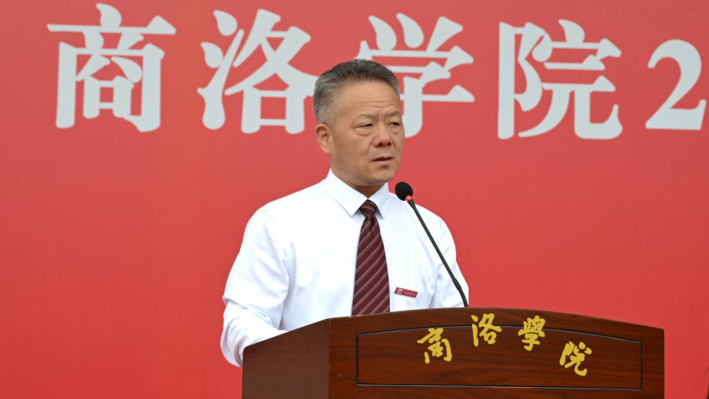 9月12日,bat365在线唯一官网登录举行2024级学生军训总结表彰大会,检阅2024级学新生军训成果,并对军训中表现突出的先进集体与先进个人进行表彰。校党委书记张志昌出席大会并讲话。校长、党委副书记权雅宁出席大会并为中国人民武装警察部队商洛支队赠送锦旗。商州区人民武装部军事科少校科长丁玉龙,中国人民武装警察部队商洛支队少校副参谋长闵超,校党委副书记、纪委书记王浩,副校长王新军、郭瑾出席大会。副校长刘宝盈主持大会。