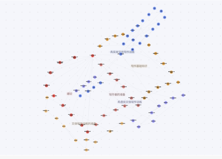 与传统的视频课程资源建设相比,知识图谱课程更加智慧化、数智化,将可视化的课程体系呈现给师生,帮助教师在教学中更好地服务学生。课程采用工作情景模拟和角色意识提升的方法,将写作理论置于实际情境中,以沟通为写作核心,设计具有挑战性的任务和项目,凸显课程两大特点:学法创新——写作“文件筐”训练法强化学生自我管理;成果导向——加深学生学习过程体验,提升其写作能力与沟通能力。同时,引入教育教学AI,将现有的课程资源进行碎片化再利用,给学生更多的学习资源选择和路径选择。学生可基于知识点及关键词,使用AI检索教学资源;教师可利用AI技术,分析学生的学习行为和学习结果,综合判断学生对知识点的掌握度,更加精准地掌握学情,实现更好地“备学生”。