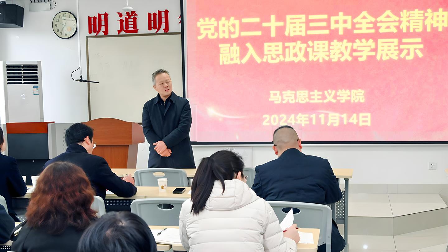 教学展示中,马克思主义学院杨增强教授围绕全会精神的理解、融入思政课的对接点和方式方法作了辅导报告。青年教师刘健、王晓霞、朱琳分别以《为什么全过程人民民主超越了西方民主》《顺势而为:加快发展新质生产力》《特色产业助力乡村振兴》为题,开展了形势与政策、习近平新时代中国特色社会主义思想概论等课程的模拟教学。