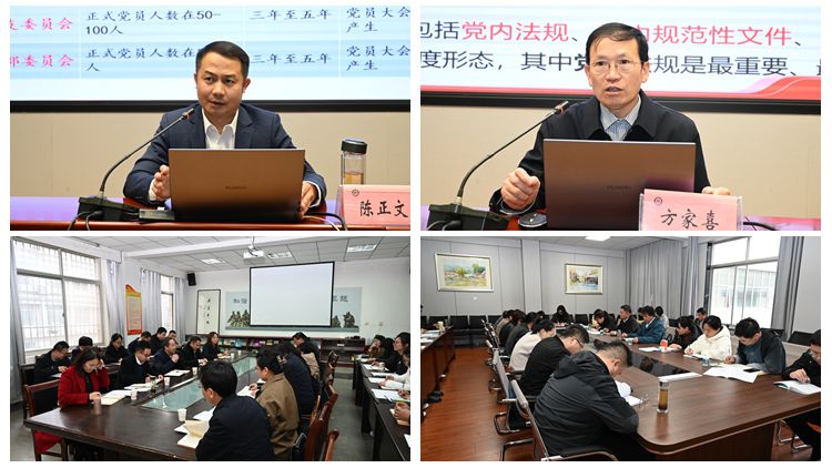 在为期两天的培训中,学校邀请陕西省委党校副教授陈正文、商洛市委机关工委二级调研员方家喜,分别以《党支部工作实务》和《认真学习贯彻党内法规制度 全面提高党的建设质量》为主题作了辅导报告。教工党支部书记及学生党支部书记分别围绕“教工党员如何在教学科研工作中发挥模范带头作用、如何创新开展党支部工作,促进党建与业务深度融合”及“如何引导学生党员发挥模范带头作用”开展了分组研讨交流。