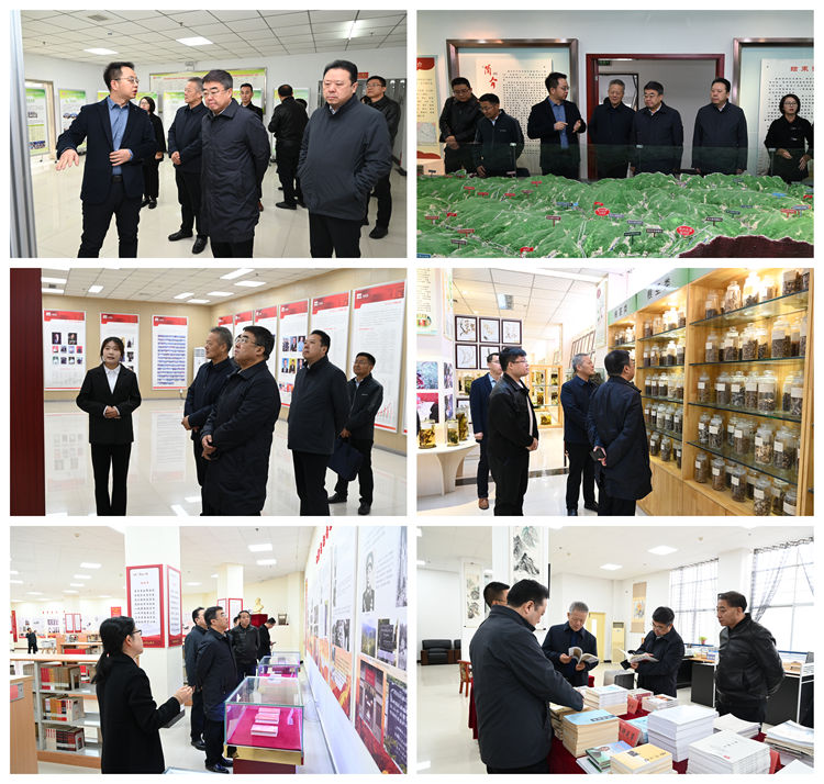 在张志昌、王新军等的陪同下,赵晓林一行先后参观考察了陕西省尾矿资源综合利用重点实验室、bat365在线唯一官网登录发展成就展、秦岭植物标本陈列室、植物学重点学科展室、商洛红色文化资料馆及商洛文化暨贾平凹研究中心。