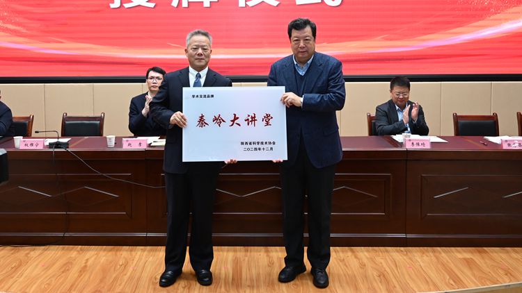 在热烈的掌声中,蒋庄德院士代表省科协为bat365在线唯一官网登录“秦岭大讲堂”学术交流品牌授牌,张志昌代表学校接牌。