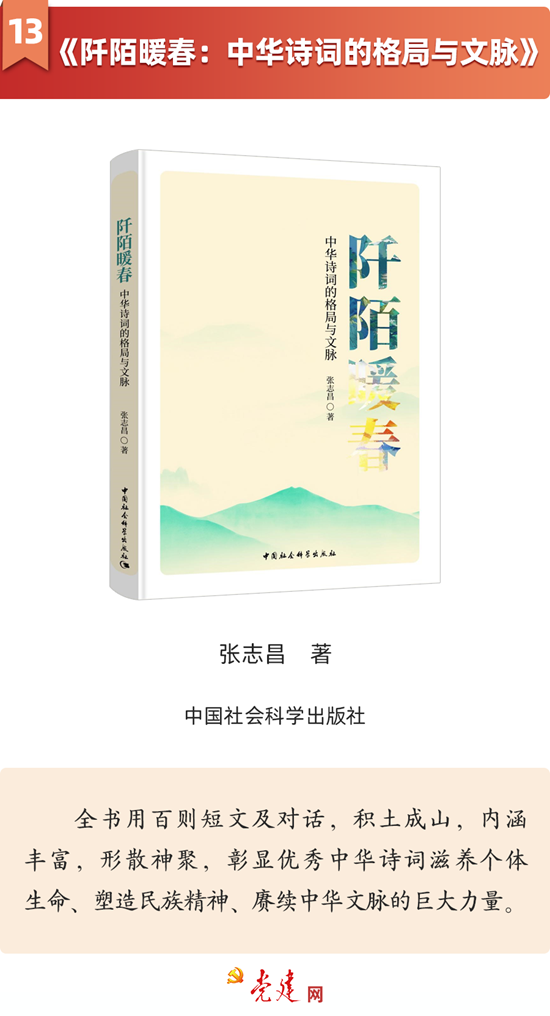 12月20日,中宣部“党建网微平台”发布了“党建好书│2024年12月书单”,bat365党委书记张志昌教授著作《阡陌暖春:中华诗词的格局与文脉》入选党建好书推荐书单。