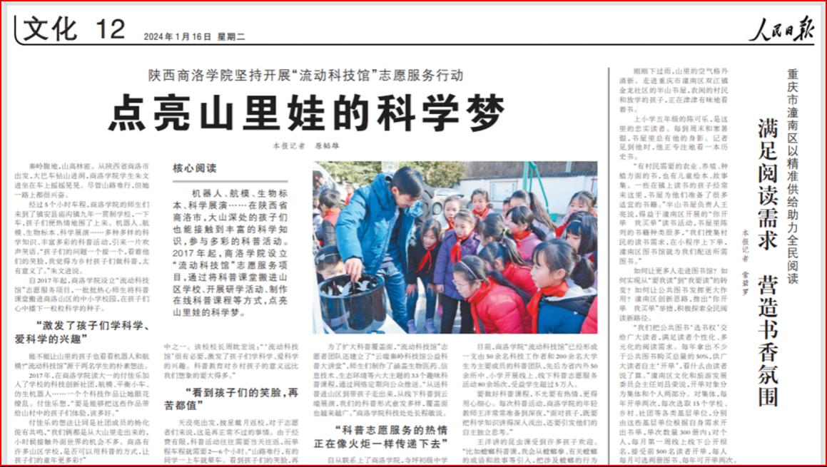 《人民日报》专题报道bat365在线唯一官网登录“流动科技馆”志愿服务工作