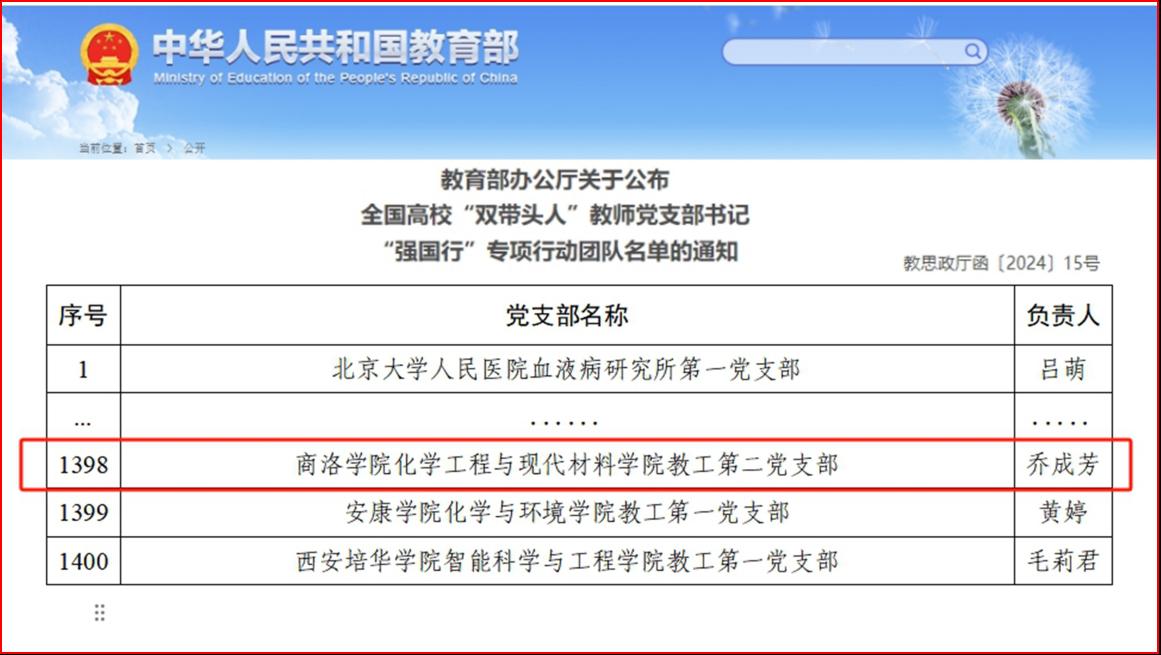 化材学院教工第二党支部入选全国“双带头人”教师党支部书记“强国行”专项行动团队