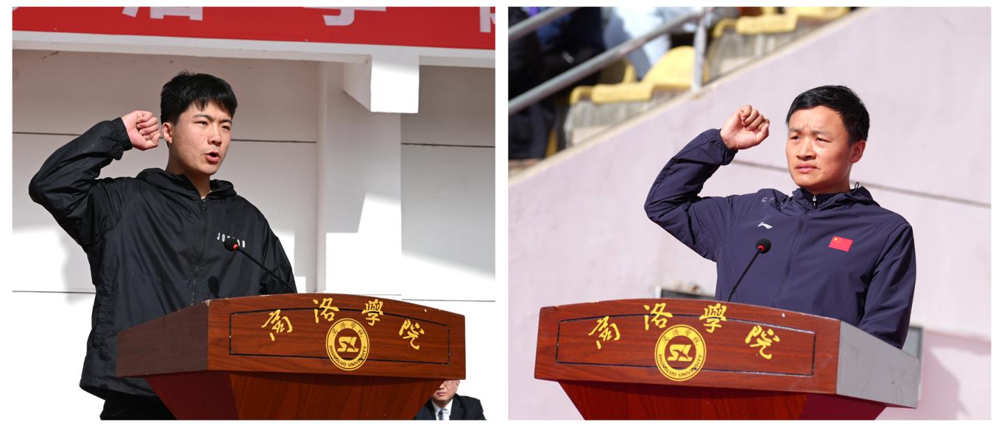 伴随着《运动员进行曲》激昂的旋律,国旗护卫队高擎五星红旗庄严入场,退役士兵方阵、彩旗方阵、花环方阵、裁判员方阵以及各二级学院师生代表队、附属小学、附属幼儿园和教职工代表组成的18个方阵依次走过主席台。他们步伐铿锵、口号嘹亮,以饱满的热情和昂扬的姿态展现商院人的精神风貌。运动员代表赵希毓、裁判员代表祝河德分别向大会宣誓。
