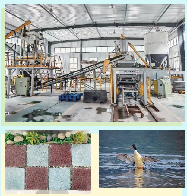 利用尾矿材料制作的玻璃透水砖(左下)