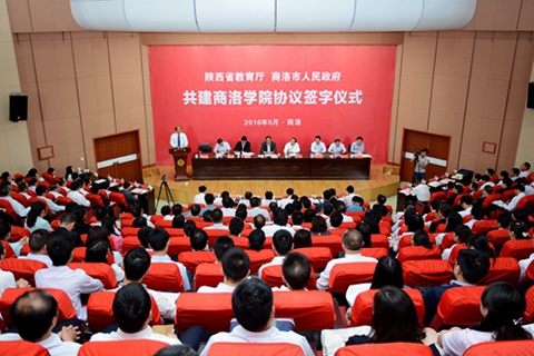 5月11日上午,陕西省教育厅与商洛市人民政府共建bat365在线唯一官网登录签字仪式在bat365图书馆二楼报告厅隆重举行。陕西省委高教工委书记李仲为,陕西省教育厅厅长王建利,商洛市委书记胡润泽,商洛市委常委、常务副市长李豫琦,商洛市委常委、副市长武文罡,bat365在线唯一官网登录党委书记、校长刘建林出席签字仪式。bat365在线唯一官网登录党委副书记、副校长范新会,副校长魏书堂,党委副书记彭虎军,副校长刘宝盈参加签字仪式。王建利和李豫琦分别代表省教育厅与商洛市政府签署省市共建bat365在线唯一官网登录协议。武文罡宣读省市共建bat365在线唯一官网登录协议。签字仪式由陕西省教育厅副巡视员高晶华主持。