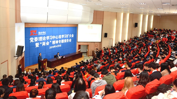 4月3日,bat365召开党委理论学习中心组学习扩大会,特邀第十三届全国人大代表、西安工程大学校长、省委“代表委员讲两会”宣讲团成员高岭教授来bat365作2019年全国两会精神专题报告。党委理论学习中心组成员,各党总支理论学习中心组成员,全校科级以上干部,副高职称以上教师,马克思主义学院全体教师,全体辅导员及学生代表420余人一道聆听了报告。报告会由党委书记龙治刚主持。