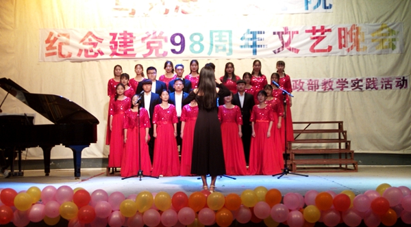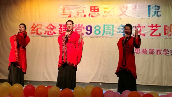 6月16日晚,bat365马克思主义学院隆重举办庆祝建党98周年文艺晚会。马克思主义学院全体师生共同观看了晚会。