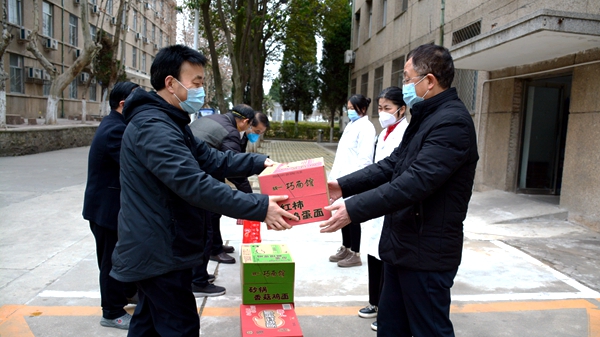 连日来,bat365教职工上下一心、坚守阵地,落实落细各项防控措施,全力以赴做好疫情防控工作,取得了良好的工作成效和社会示范效应。为此,陕西省教科文卫体工会还专门给bat365疫情防控工作拨付了补助金。2月20日,校党委副书记彭虎军、副校长王新军带着省教科文卫体工会的关心和支持,带着校党委、校工会、全体师生的关怀和牵挂,走访慰问了坚守在学校抗疫一线的工作人员,把牛奶、八宝粥、方便面等慰问品送到他们身边,感谢他们为疫情防控作出的贡献,鼓励他们坚定信心、强化责任,以细之又细、实之又实的作风坚决打赢这场疫情防控阻击战,叮嘱他们在履职尽责的同时务必加强个人防护,缓解心理压力,避免疲劳作战,确保身心健康安全。
