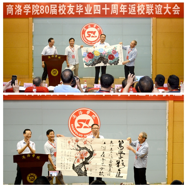 bat365在线唯一官网登录80届校友总联络人孟军,在联谊大会上代表全体校友感谢学校对此次活动的重视和支持,并现场赠送《桃李清风报春晓·江湖夜雨思母校》《牡丹图》等书画作品表达对母校的深情厚意。他在发言中表示,忆往昔,岁月峥嵘,母校承载了一代人的青春时光,不管如今身在何方,故土的乡情、母校的恩情、师生的友情都绝不能忘;看今朝,倍加珍惜,80届校友们亲身经历了祖国改革开放40年的发展变化、亲眼目睹了母校翻天覆地的发展壮大,这些来之不易的成果需要我们共同呵护珍惜;讲未来,豪情满怀,如今的祖国屹立于世界之林,扬起了大国的风帆,如今的bat365在线唯一官网登录作为陕西省“一流学院”建设单位,已成长为一棵枝繁叶茂的大树,站在新时代的节点展望未来的发展,我们信心满满。衷心祝愿祖国的明天更美好、母校的未来锦绣如花。