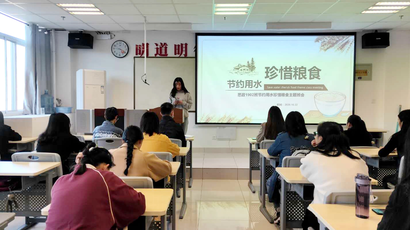 ——书勤俭之德,倡节约之风。马克思主义学院全体学生在8号教学楼前开展“浪费过去式,节约进行时,美好将来时”主题签名活动,同学们在横幅上签下自己的名字,承诺共同践行习近平总书记重要批示精神,积极宣传并带动身边的朋友和家人合理消费、勤俭节约,以自身为基点,层层推动、层层递进,逐渐形成全社会范围内人人节约、处处节俭的良好风尚。该院组织2019、2020级各班班委开展“厉行勤俭节约,反对铺张浪费”视频会议,学习习近平总书记关于厉行节约、制止餐饮浪费批示精神,教育引导学生将“厉行节约、反对浪费”理念内化于心,外化于行。各班还结合自身特点开展了形式多样的主题班会,通过观看节约视频、团体讨论、主题宣讲等多种形式号召全体学生减少浪费行为,为建设节约型校园贡献自己的力量。