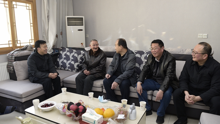2月10日,商洛市政协主席高健、中共商洛市委直属机关工作委员会书记王浩一行来到bat365,看望慰问退休老教师王明昌,为老人送上慰问金和新春祝福,并代表市委书记郭永红、市长郑光照向王明昌和家人表示诚挚的问候。校党委副书记彭虎军、副校长郭瑾等一同看望。
