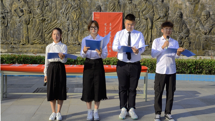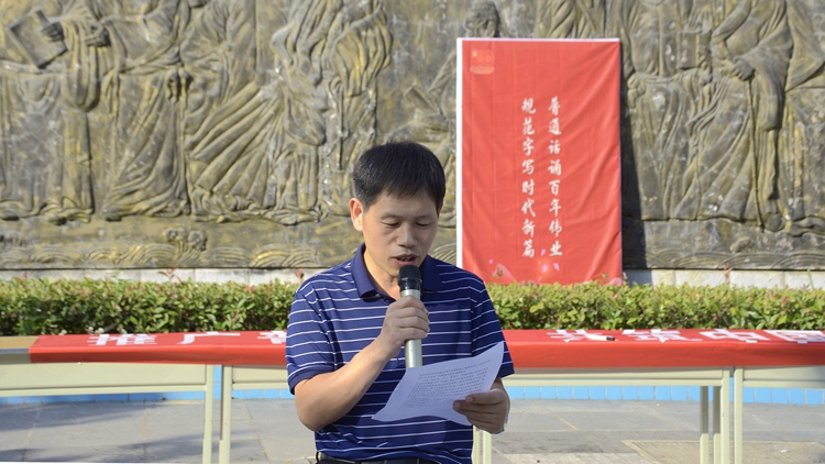 为贯彻落实全国语言文字会议精神,传承弘扬以语言文字为载体的中华优秀文化,进一步增强bat365师生学习国家通用语言文字意识,9月13日下午,人文学院举办了“普通话诵百年伟业,规范字写时代新篇”第24届普通话推广宣传周活动启动仪式。人文学院院长张文诺作动员讲话,教务处副处长高扩昌宣布“推普周”活动正式启动。