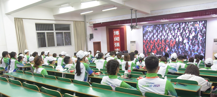 9月15日晚8时,中华人民共和国第十四届运动会在西安奥体中心体育场盛大开幕。中共中央总书记、国家主席、中央军委主席习近平出席开幕式并宣布运动会开幕。为进一步鼓舞士气,弘扬志愿服务精神,确保bat365十四运志愿服务工作顺利开展,校团委组织bat365十四运全体志愿者观看了十四运开幕式盛况,为陕西自豪,为家乡喝彩。