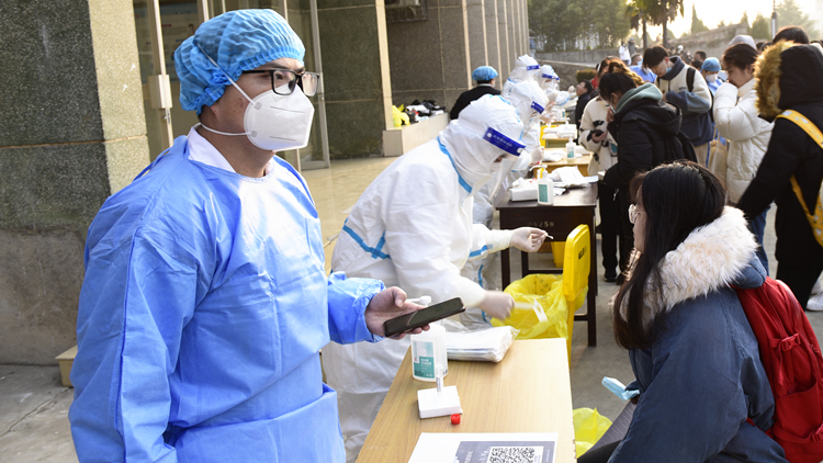 根据陕西省教育考试院《2022年陕西省硕士研究生招生考试公告》精神及组考防疫相关要求,为确保研考工作有序进行、考务人员及考生生命安全和身体健康,12月24日,bat365在北新街校区、丹江校区和南院家属区设立核酸检测点,邀请商洛市中心医院医护人员来校,为研究生招生考试考务工作人员、参考学生、后勤保卫人员等共6190人统一进行核酸检测。