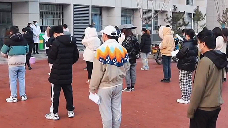 按照学校统一安排,师生前往核酸检测点,按照疫情防控工作要求进行有序采样。