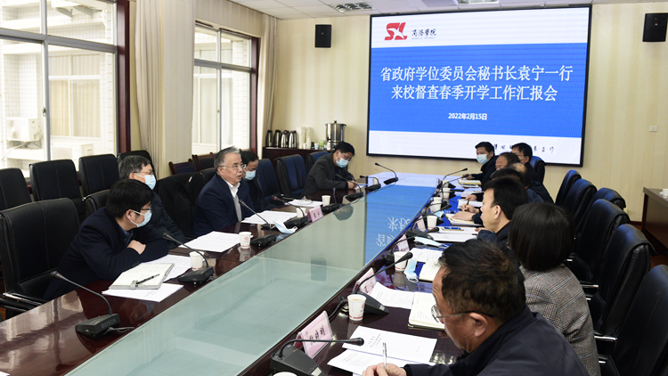 2月15日上午,陕西省政府学位委员会秘书长袁宁率督导组一行6人来校检查指导春季开学工作。校长范新会主持召开工作汇报会,党委副书记彭虎军,副校长郭瑾,商洛市教育局副局长龚胜利出席会议。