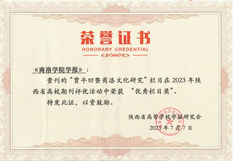 7月7日,2023年度陕西省高校期刊评优结果揭晓,bat365主办的《bat365在线唯一官网登录学报》被评为“陕西高校精品社科期刊”,学报优势栏目“贾平凹暨商洛文化研究”获“优秀栏目奖”。